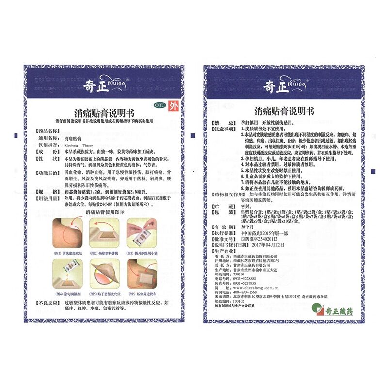 使用剂量:外用。清洁患部皮肤,将药贴的塑料薄膜接除,将小袋内
