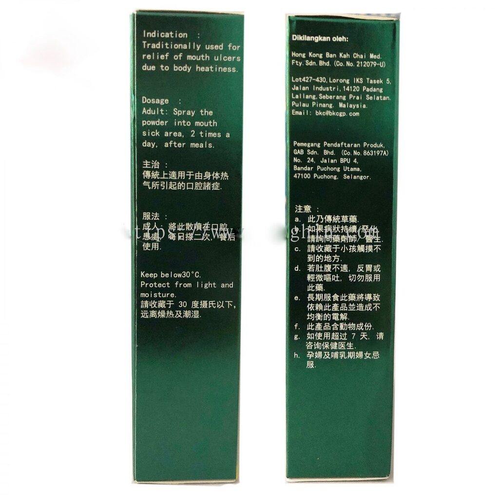 Dosage : Adult- spray the powder into mouth sick area, 2 times a day , after meal