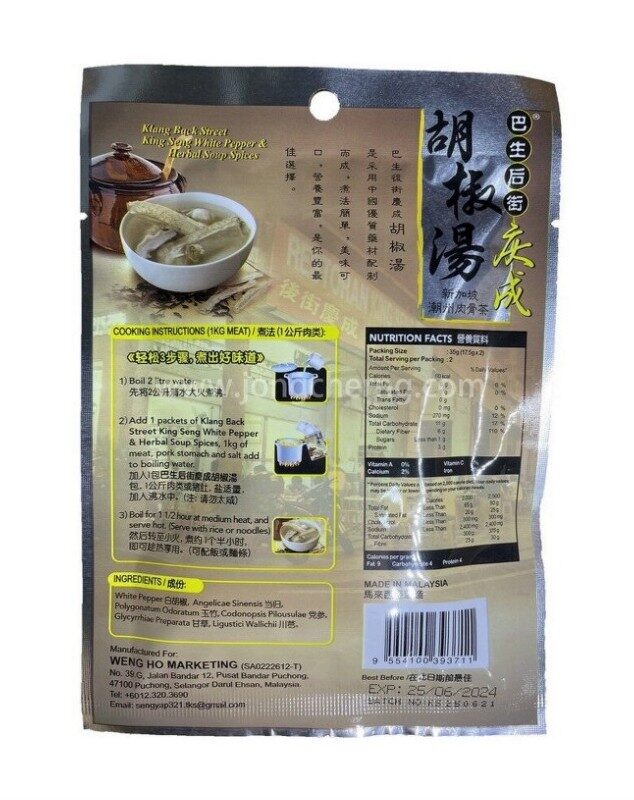 包装好的调味包简单易用,只须加入蒜和骨一起烹饪您就能随时随地享受一碗让人垂涎三尺的新加坡肉骨茶。